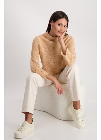 Megztinis pagamintas iš aukštos kokybės medvilnės mišinio su šiaušta viskoze ir blizgančiu lurexu, suteikiančiu rafinuotą blizgesį. Kišenės su atvartais ir klasikinių sagų užsegimu užbaigia dizainą.