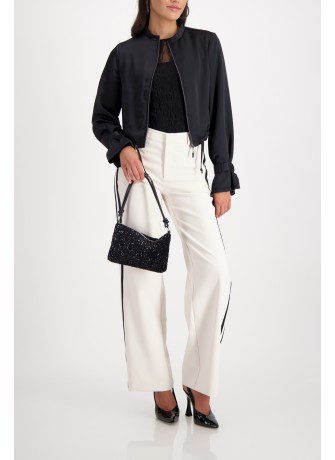 Ši elegantiška baltos kriauklės spalvos palaidinė pagaminta iš 100 % medvilnės. Žavi elegantišku dirbtinių brangakmenių papuošimu prie kaklo iškirptės. Palaidinės pečių linijos šiek tiek padidintos su įprasta apvalia kaklo iškirpte ir trumpomis rankovėmis.