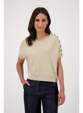 Ši baltos spalvos palaidinė-megztinis, pagamintas iš 100 % medvilnės, išsiskiria savo kasdieniu stiliumi, trumpomis rankovėmis, apvalia kaklo iškirpte ir stilingais nuleistais pečiais. Šis drabužis ypatingas tuo, jog yra minkštos medž., jaukus ir jį galima derinti kaip megztinį ir kaip palaidinę.