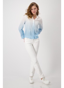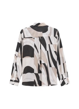 Elegantiška juodos spalvos palaidinė, pasiūta iš plūstančios viskozės, su blizgiais dirbtiniais deimantų kaspinais, suteikiančiais stilingą išvaizdą. Palaidinė su apvalia iškirpte ir įpjova. Rankovės trumpos ir pūstos.